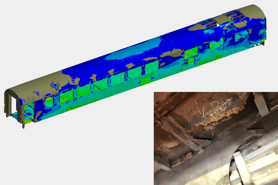 Aufgrund des Alters der Fahrzeuge fehlten unserem Kunden CAD-Modelle und Strukturanalysen. Durch die Einbeziehung der Korrosionsschäden in unser Modell konnten wir die maximal zulässige Korrosion und die minimal verbleibenden Wandstärken definieren. Für Bereiche mit fortgeschrittenen Schäden haben wir massgeschneiderte Reparaturlösungen entwickelt und die strukturelle Integrität der Fahrzeuge sichergestellt. Lesen Sie mehr über das Projekt